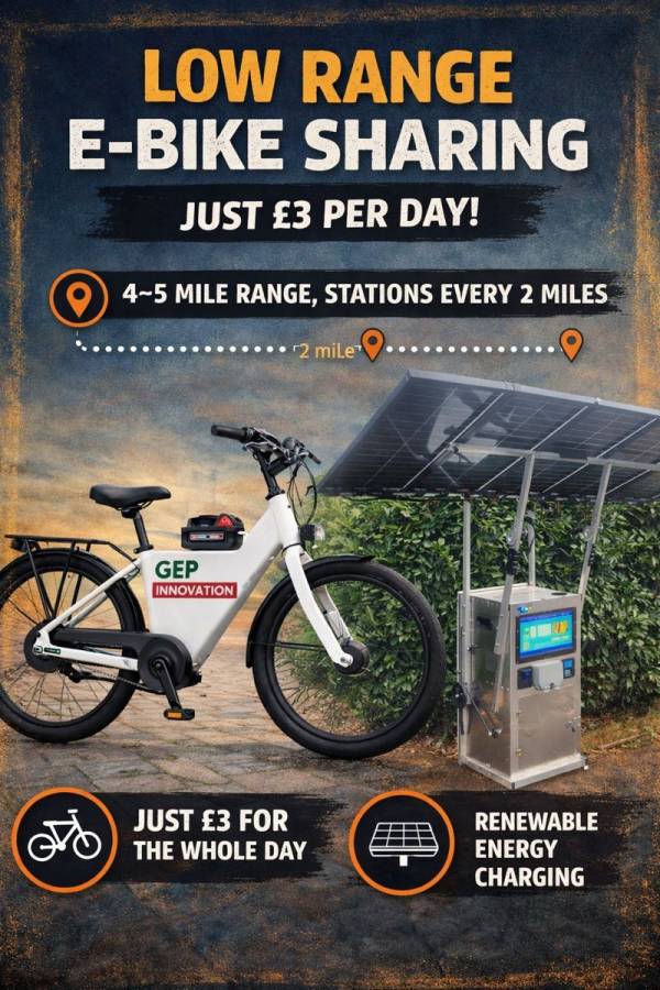 GEP Docked E-Bike Sharing is an affordable, station-based micromobility system designed for short urban trips and everyday use.